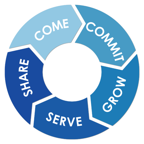Obviously no diagram can perfectly capture the process of discipleship, which is a life-long pursuit for every disciple of Jesus. Although we have broken the process down into five distinct steps, the truth is that there is often a lot of overlap between these steps. It is also true that at least the last three steps – grow, serve, and share – are not steps that are ever fully completed during our lifetime, but rather actions that ought to characterize the life of a believer throughout his or her life. But as long as we keep those limitations in mind, this discipleship path can be a helpful tool in identifying the next steps in each person’s spiritual development.